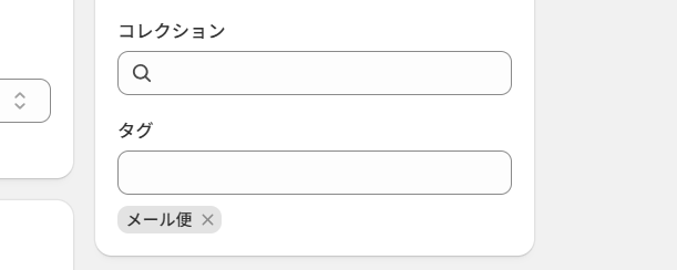 まず、Shopify管理画面で各商品に以下のようなタグを付与します。