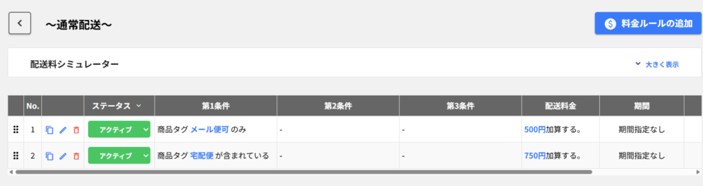 - 商品タグごとの配送料金設定|クール便や小型郵便対象など