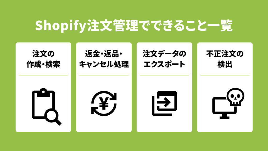 Shopifyの注文管理機能は、単に「受注を確認する」だけでなく、以下のような業務を一元的に行えるのが大きな特徴です。