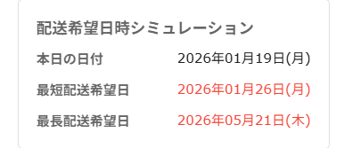 「3〜5日以内に発送」というような不透明な表記よりも、「○月○日にお届け予定」という具体的な日付は、決済への後押しをする面でも非常に効果的な情報のひとつです。