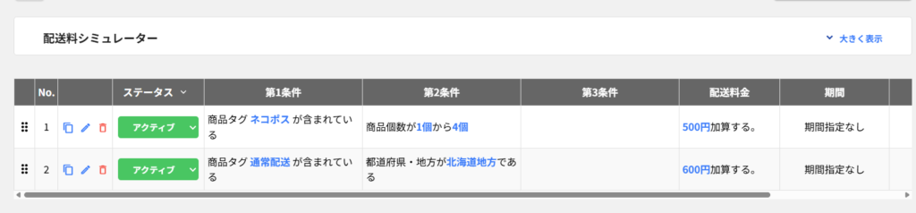 - 配送料金シミュレーター|配送料金シミュレーターを使用して、設定した条件が意図通り機能するか確認可能