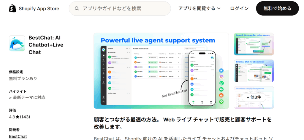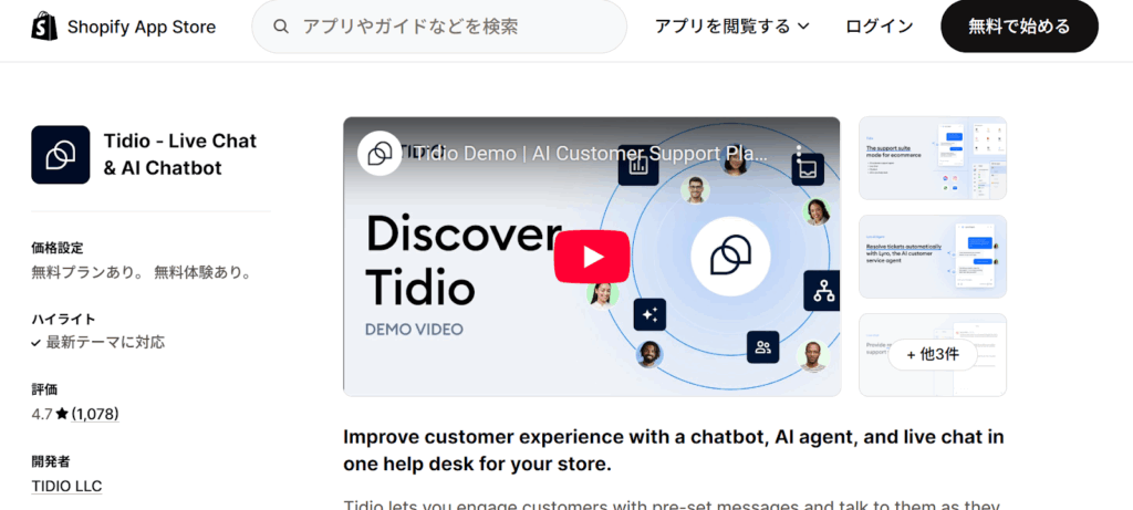 「Tidio ‑ Live Chat & Chatbots」は、多機能性とシンプルさを兼ね備えた強力なチャットボットアプリです。