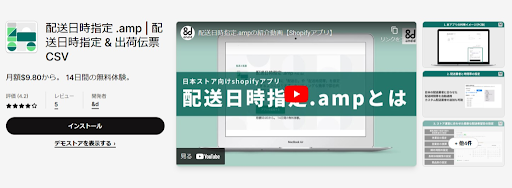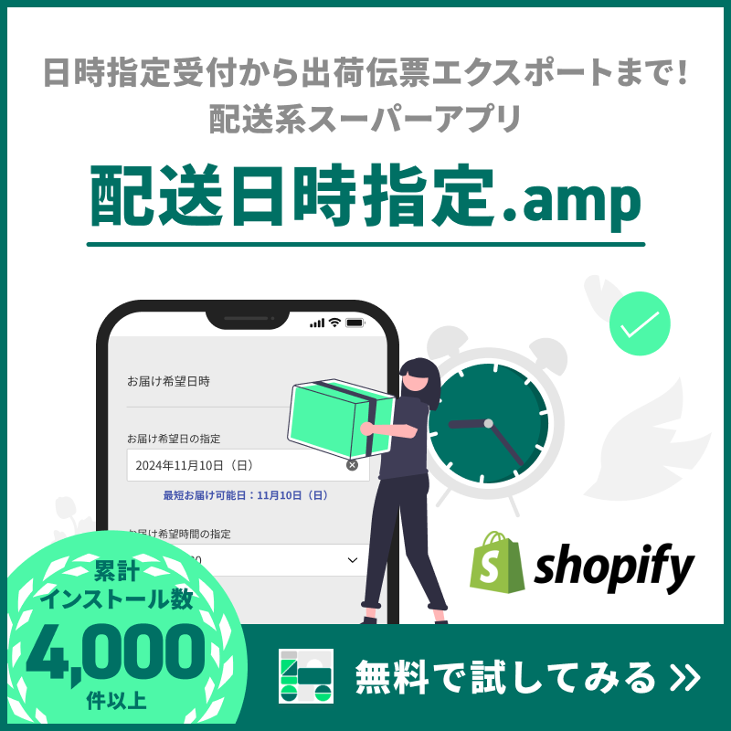 累計インストール数5,000件を誇る配送系Shopifyアプリの「配送日時指定.amp」。