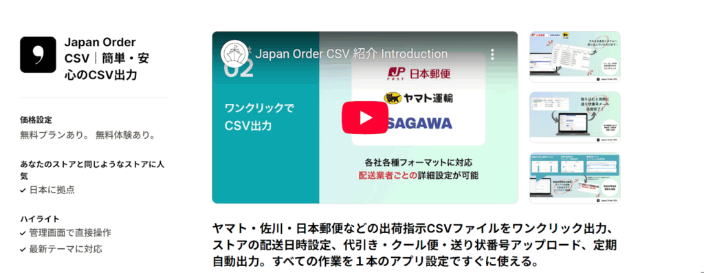 「Japan Order CSV」は、国内向け出荷作業をサポートするアプリです。