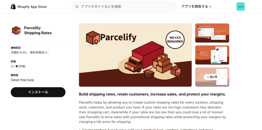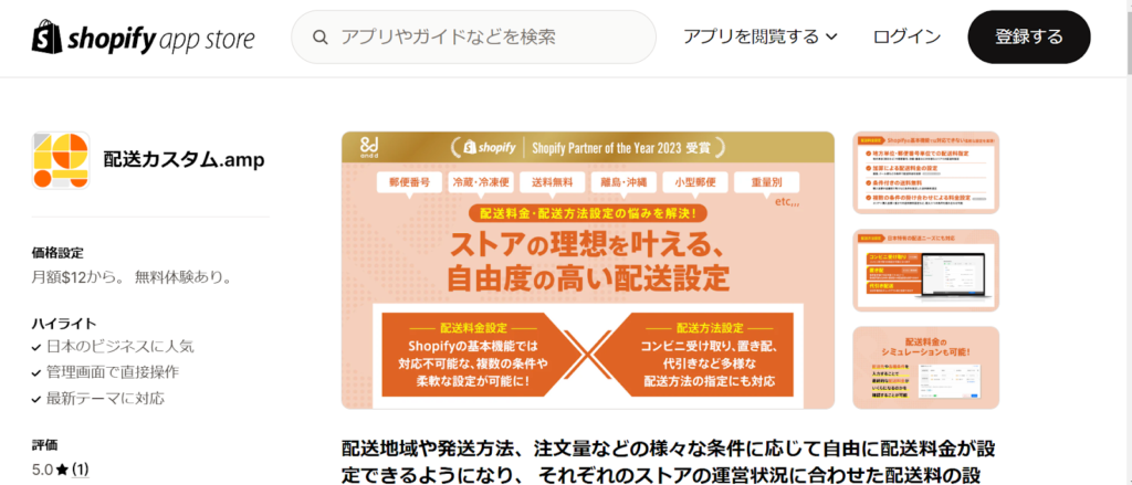 「配送カスタム.amp」は、日本向けに開発されたShopifyの国産送料設定アプリです。